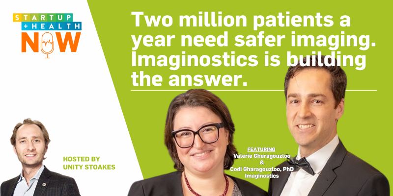 In this episode of StartUp Health NOW, Unity Stoakes sits down with CEO & Co-founder Valerie Gharagouzloo and Chief Science Officer & Co-founder Codi Gharagouzloo, PhD, of Imaginostics, the health technology company reimagining what MRI can tell us about the human body. Their platform, built on a technology invented by Codi during his PhD research in 2012, creates a new quantitative data layer inside existing MRI scanners, one that replaces toxic contrast agents, delivers images judged ten times better than the gadolinium standard, and generates vascular biomarkers measurable for the first time at the individual patient level.